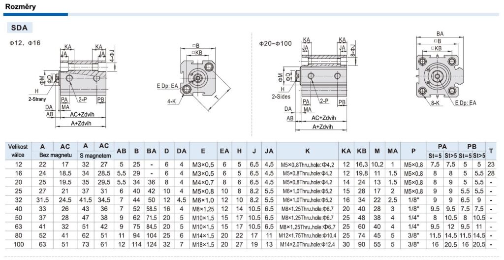 - Válce jsou opatřeny magnetickým snímačem uvnitř válce pro snímání polohy